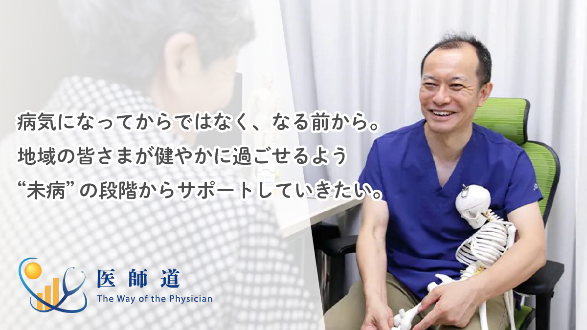 病気になる前の段階、いわゆる“未病”の段階で介入していけるようにしたいです。健康への意識を、もっと地域の方に持っていただけるよう働きかけていきたいと思っています。 妻が歯科医師なので、歯科との連携も強化しています。 噛み合わせが崩れると、首や体のバランスが崩れて全身に影響するので、顎関節へのアプローチなども重視しています。